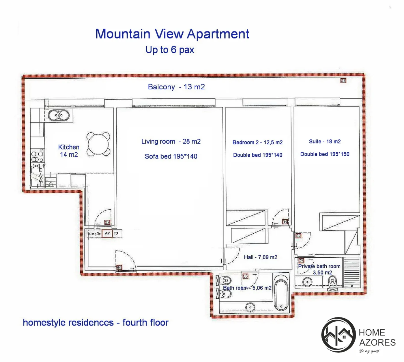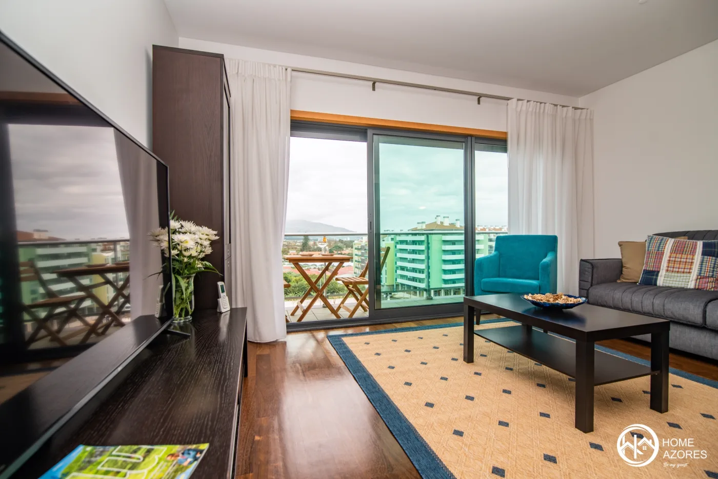 Space with large areas and with a light and modern decor. It has a balcony along all rooms with a fantastic view of the Lagoa do Fogo Mountain.