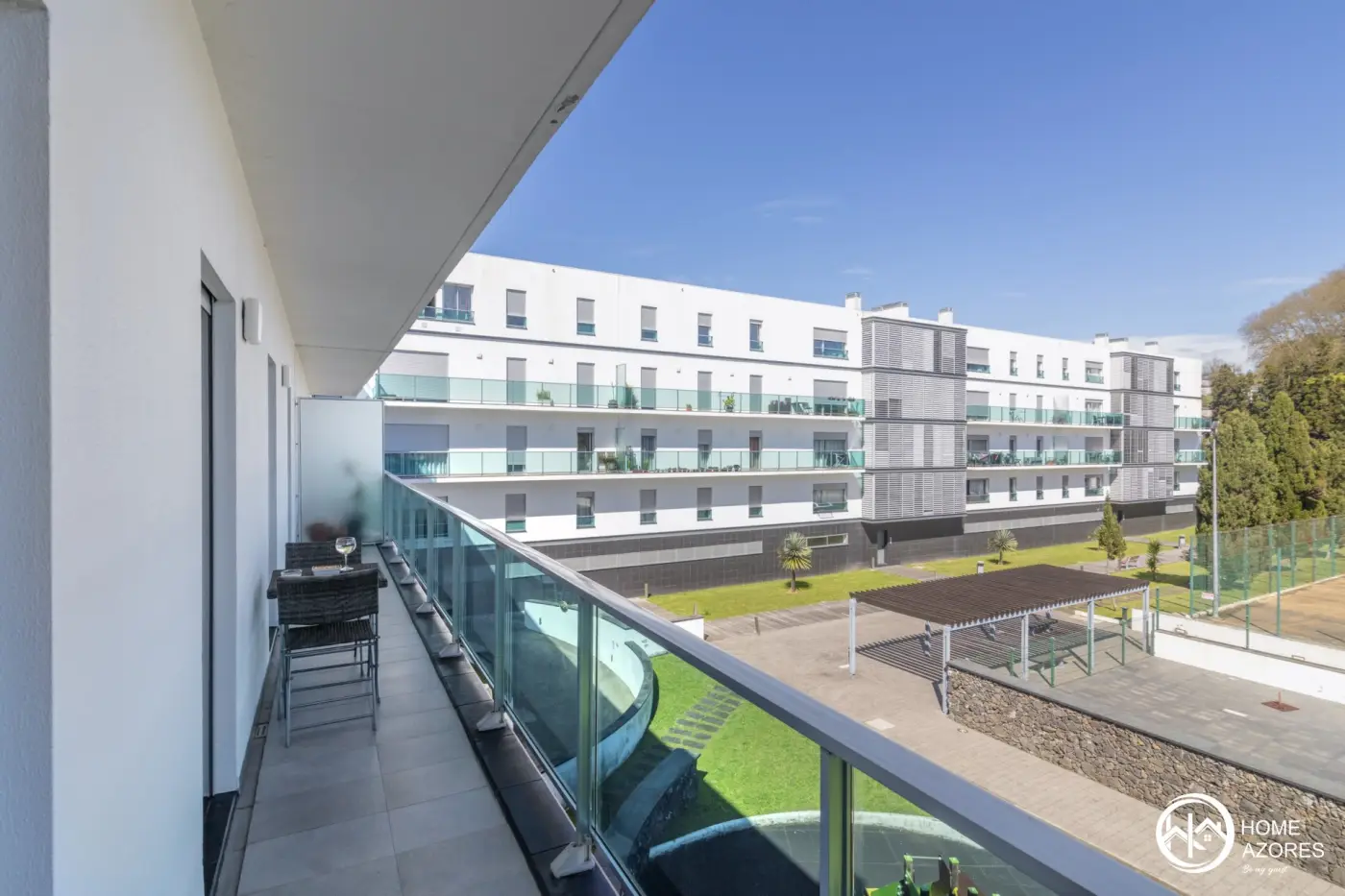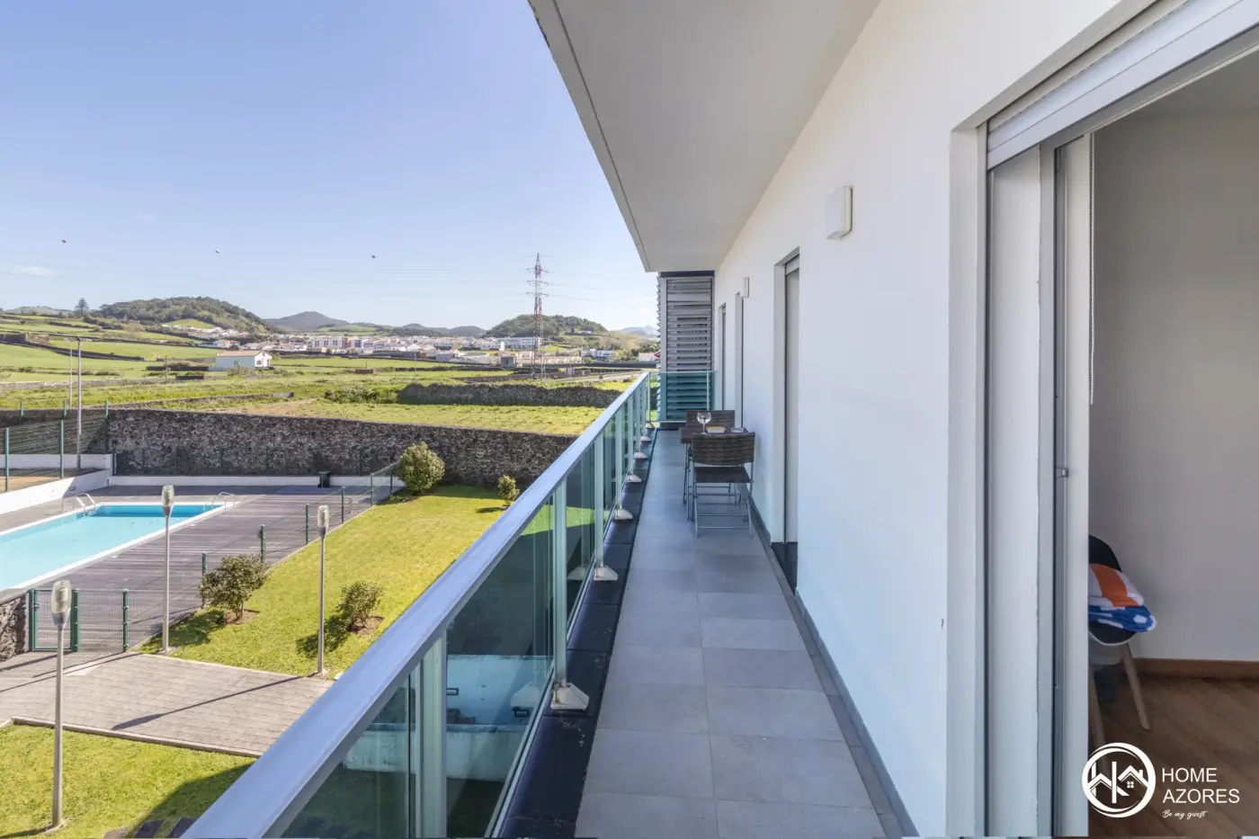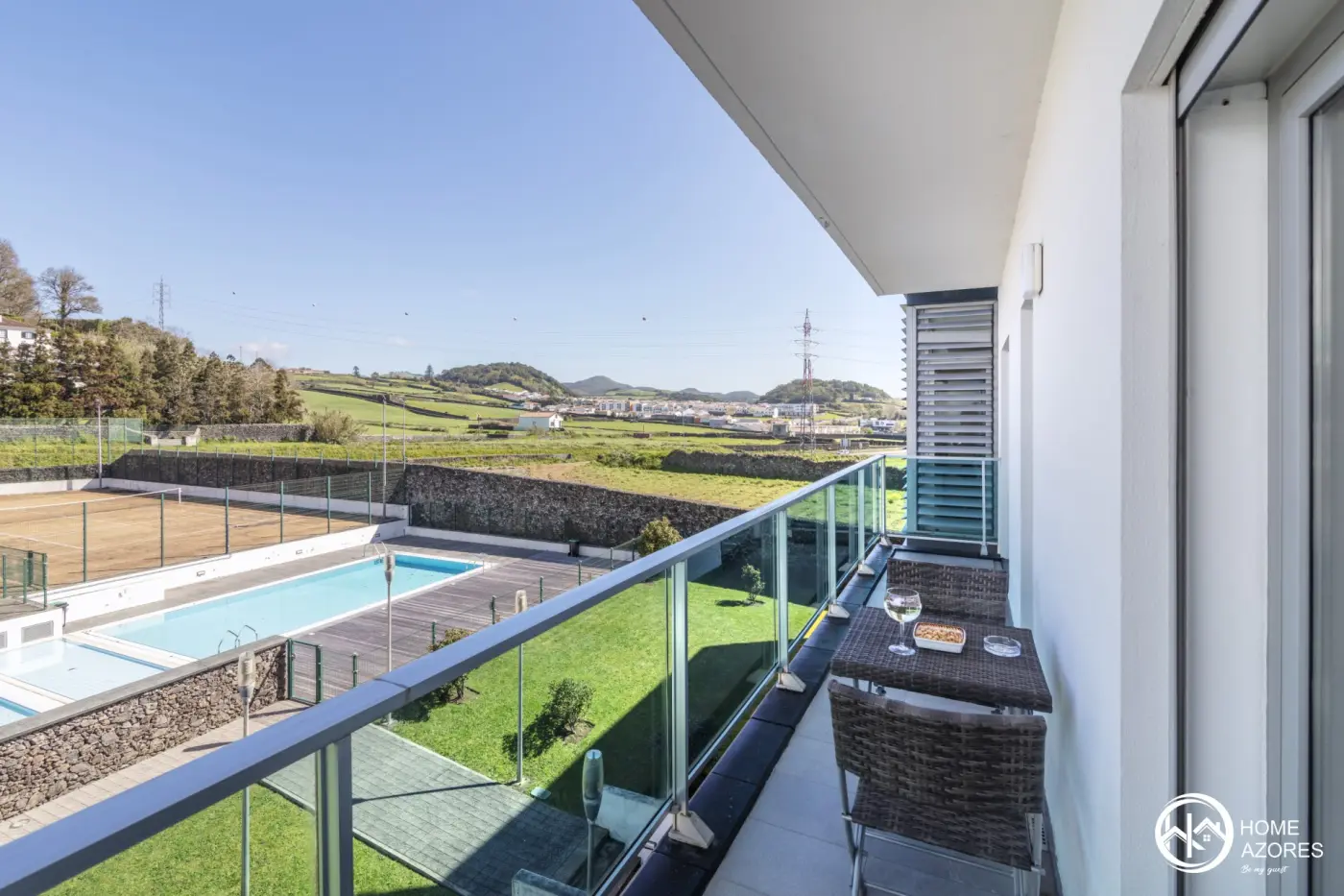 Apartment with everything you need for an unforgettable vacation on São Miguel Island - Azores. Space with large areas and a light and modern decor. It has a spacious balcony surrounding the entire unit with views over the pool and tennis courts.