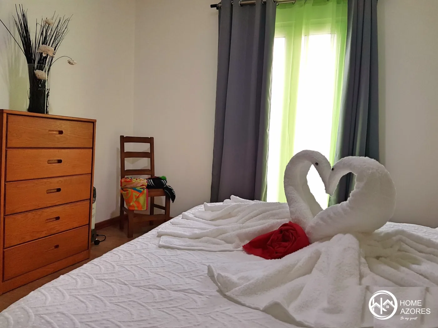 Este apartamento fica num 1º andar. Tem 1 quarto com uma cama Queen size (190x140), uma sala de estar com uma zona de refeições e cozinha toda equipada, uma zona com uma cama de casal (185x135), uma casa de banho completa e uma varanda com vista para a maravilhosa Serra de Água de Pau.