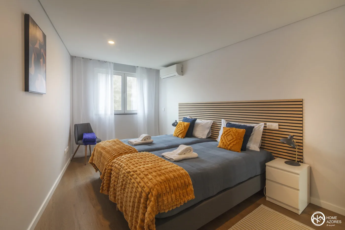 Todos os quartos estão equipados com ar condicionado, WiFi, lençóis, toalhas e todos os consumíveis para banho e higiene. Também fornecemos toalhas de praia para uso em qualquer zona balnear da ilha.