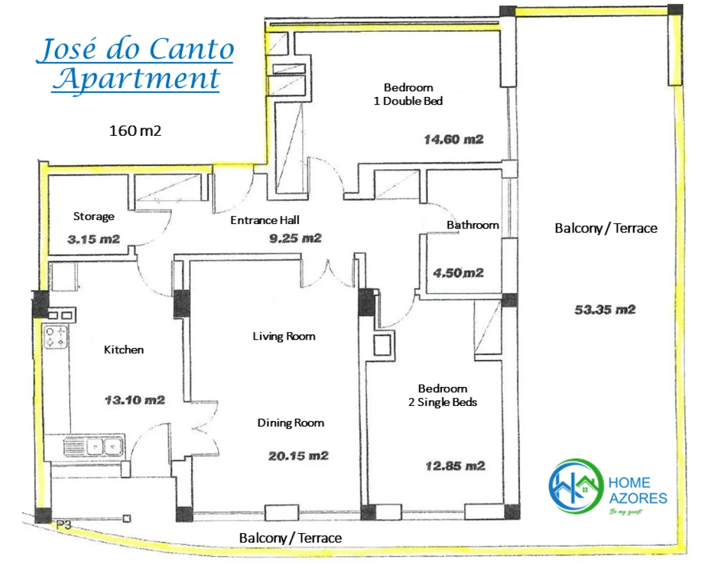 Quando a ocupação for de 5 hospedes, instalamos uma cama extra num dos quartos ou na sala (200x80cms)