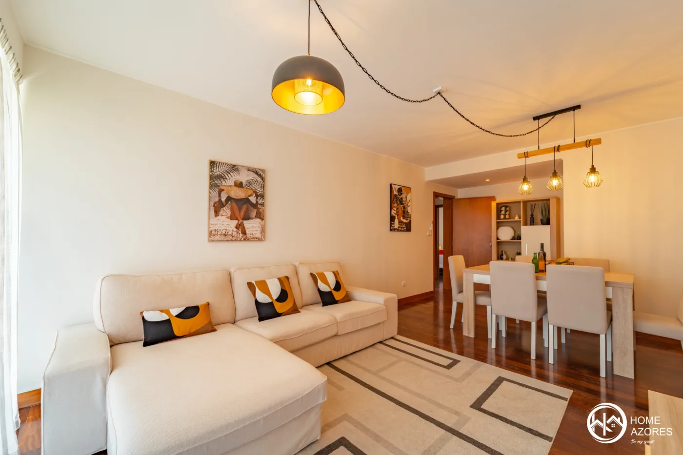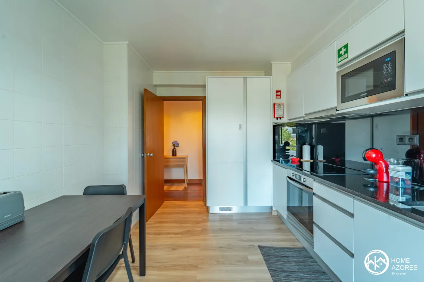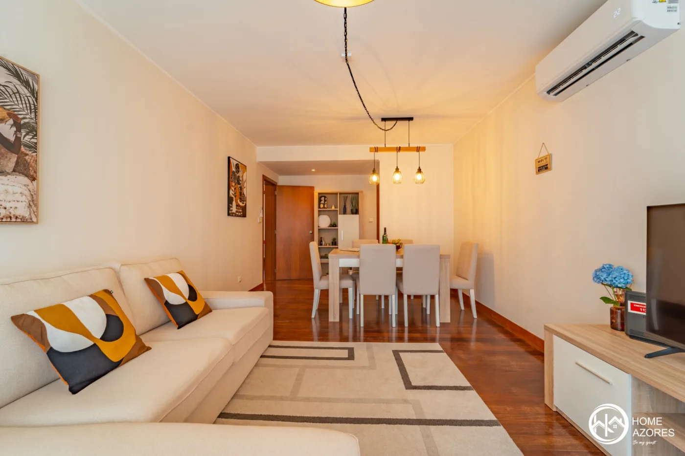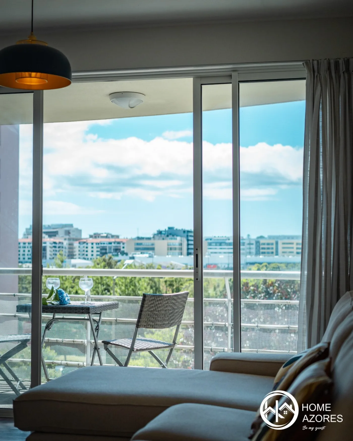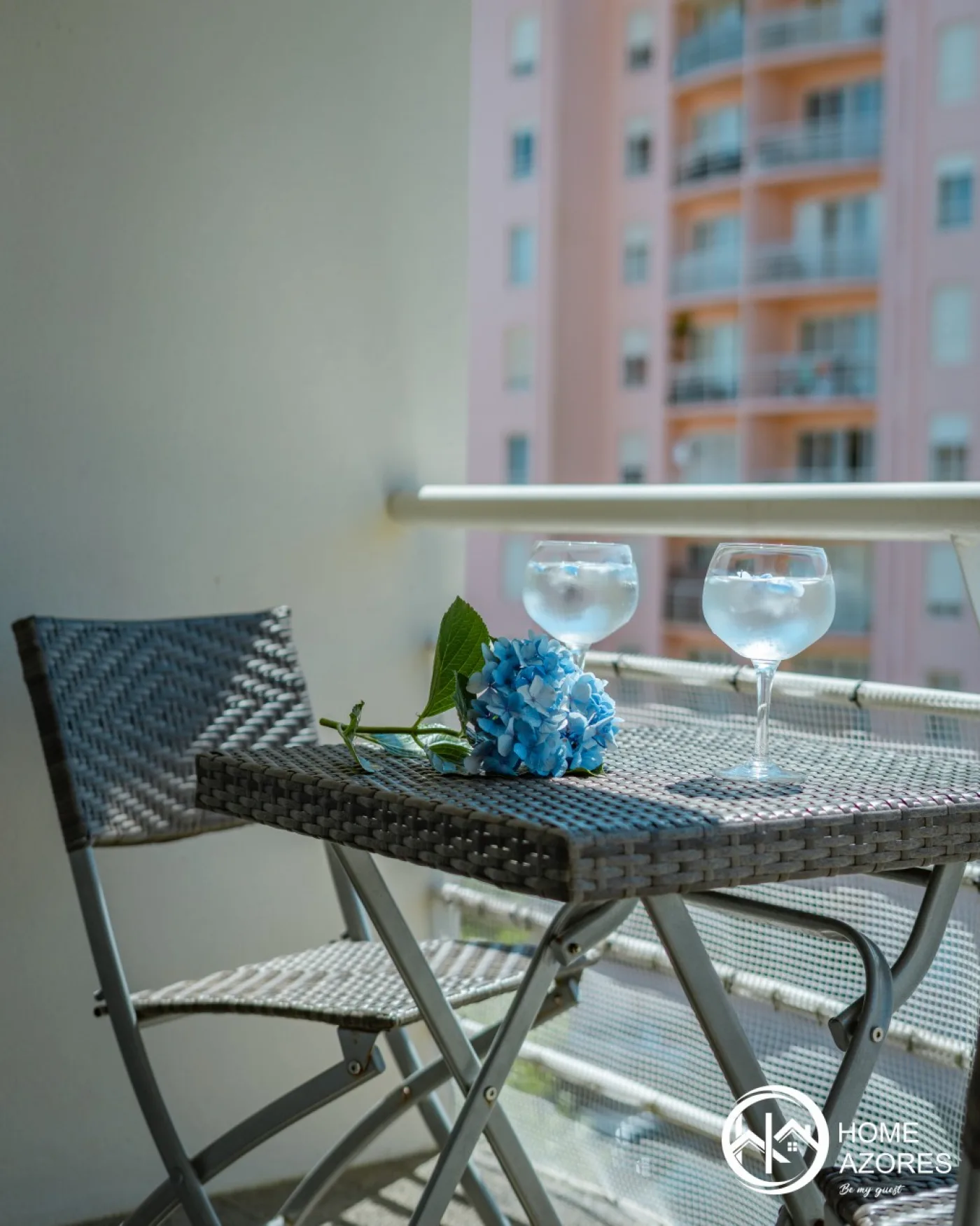 Apartamento com tudo o que precisa para umas férias inesquecíveis na Ilha de São Miguel - Açores. Espaço com zonas amplas e com uma decoração leve e moderna. Tem uma agradável varanda na sala com mesa de refeição para 2 pessoas.