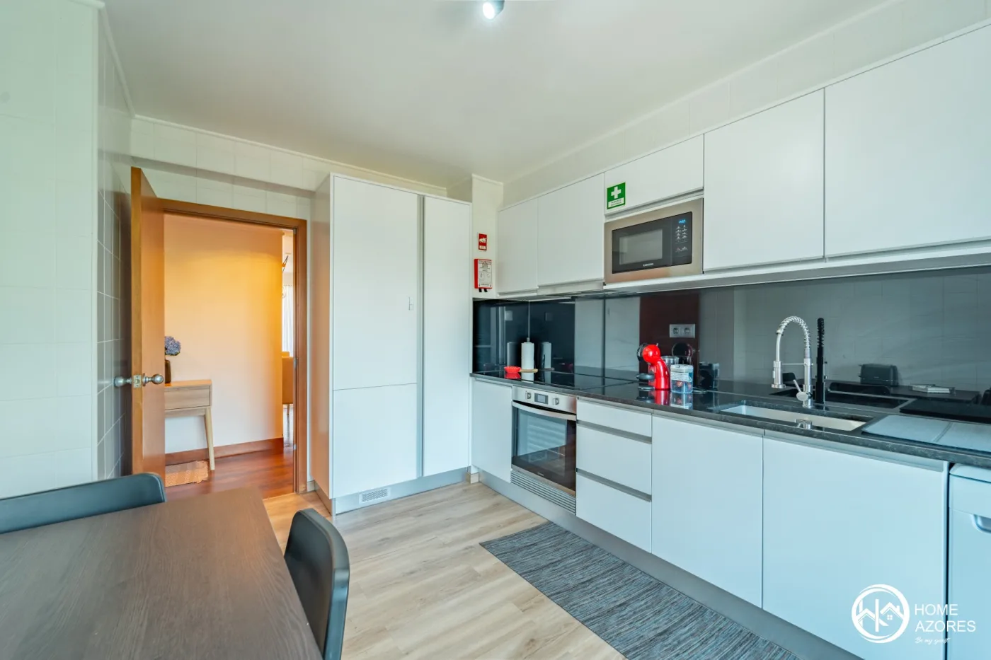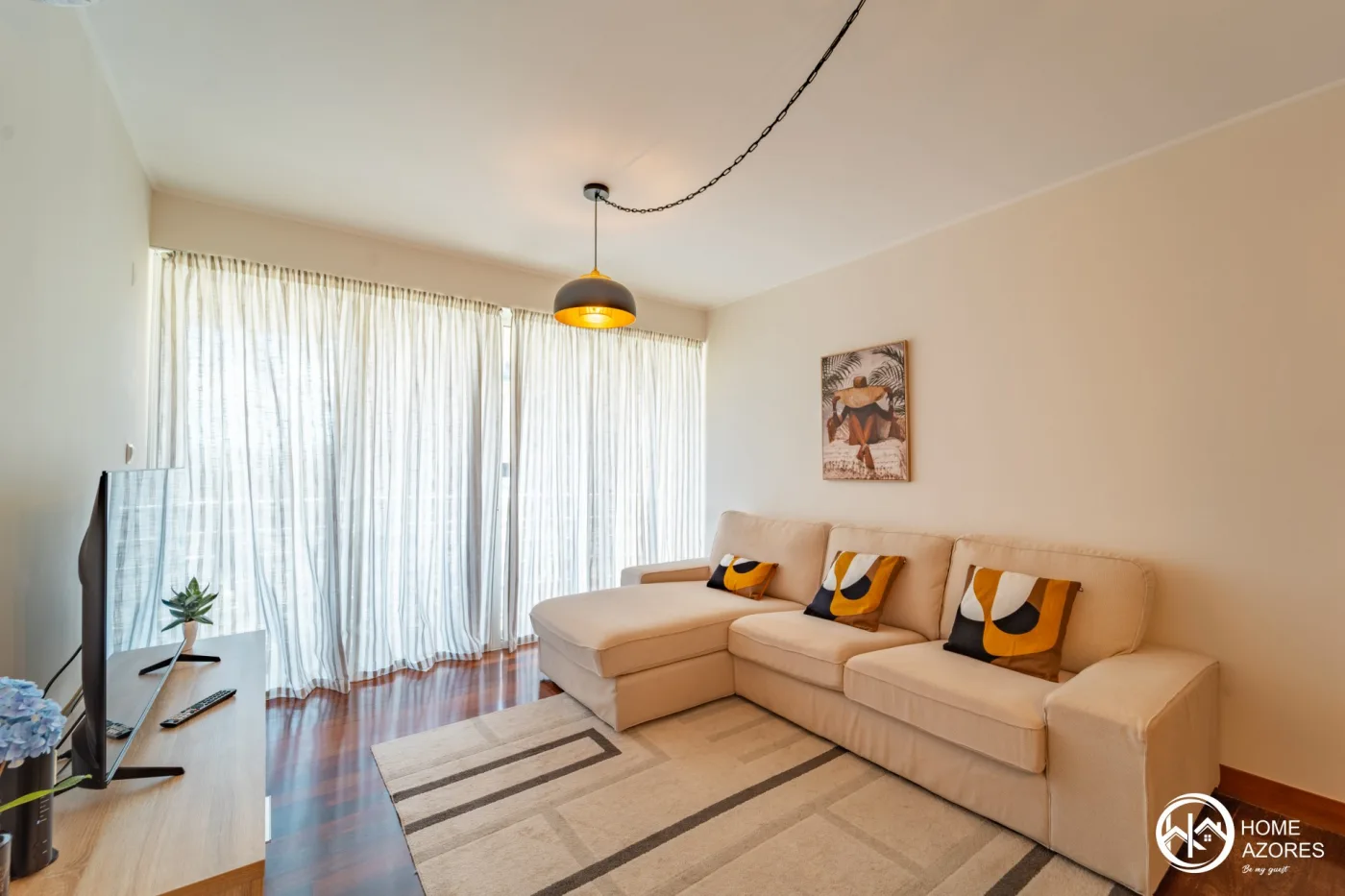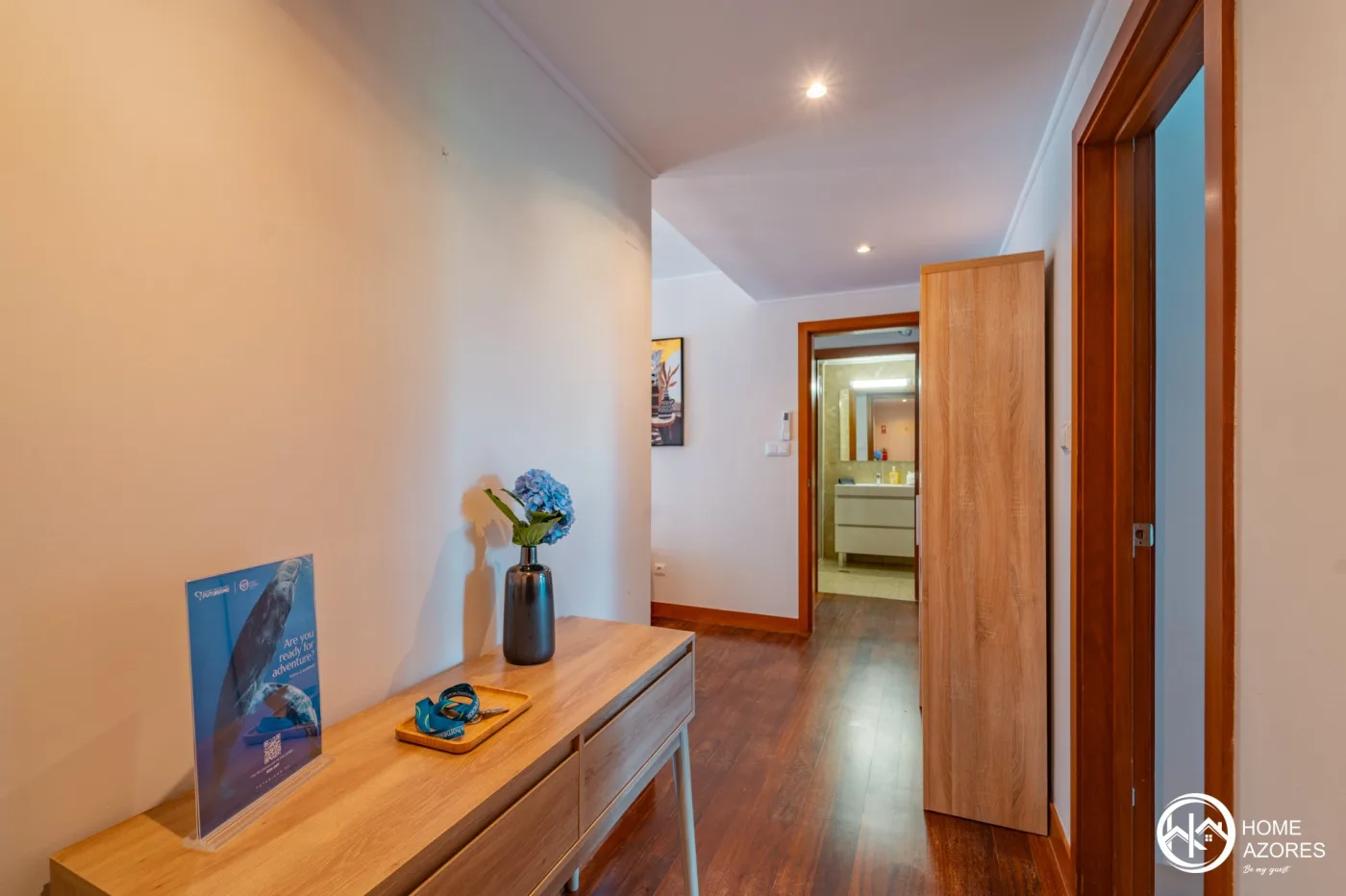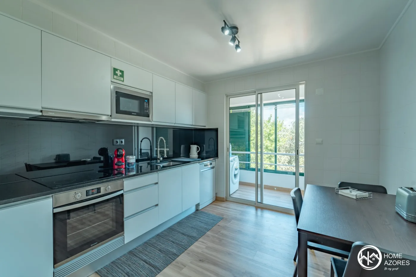 Apartamento com tudo o que precisa para umas férias inesquecíveis na Ilha de São Miguel - Açores. Espaço com zonas amplas e com uma decoração leve e moderna. Tem uma agradável varanda na sala com mesa de refeição para 2 pessoas.
