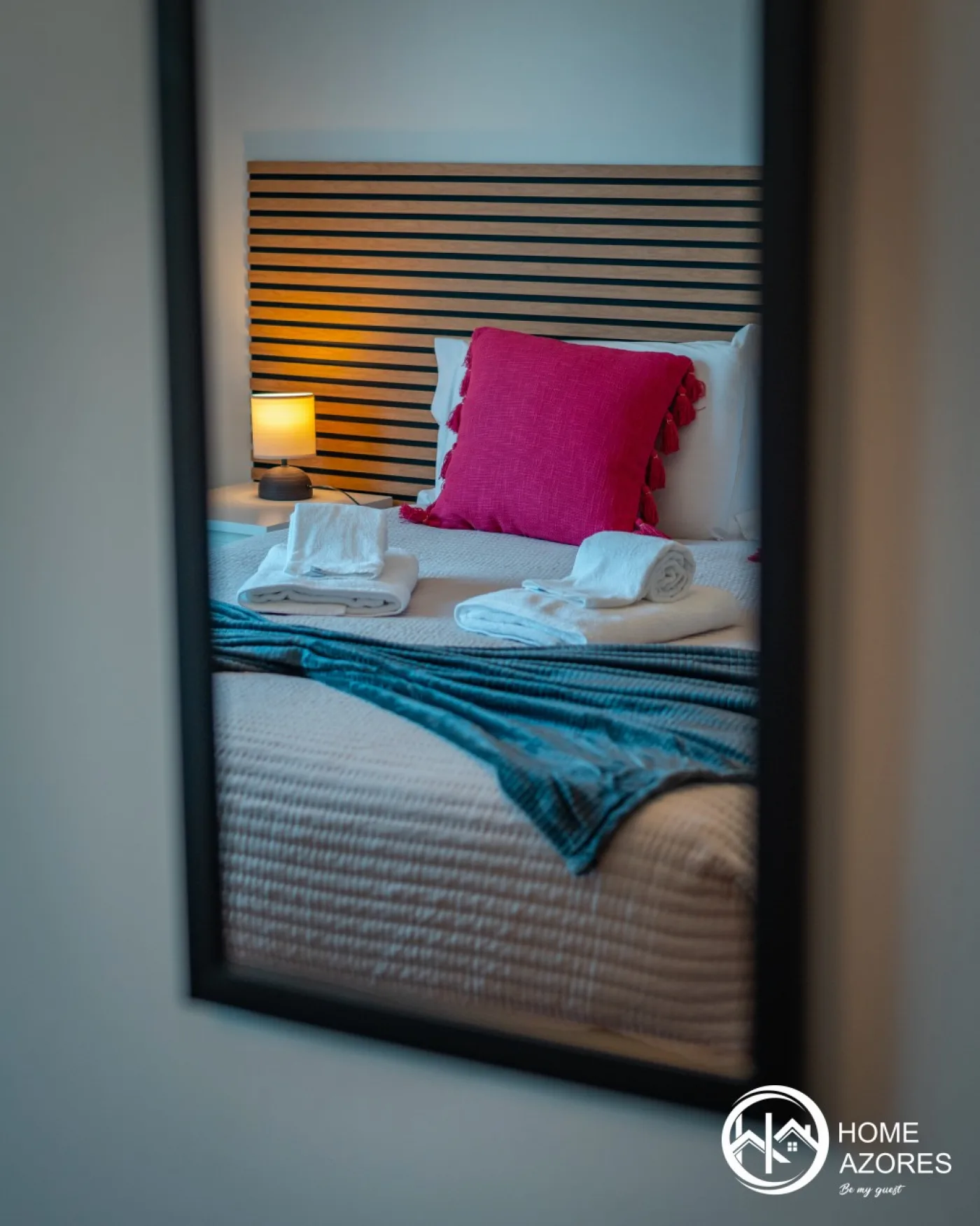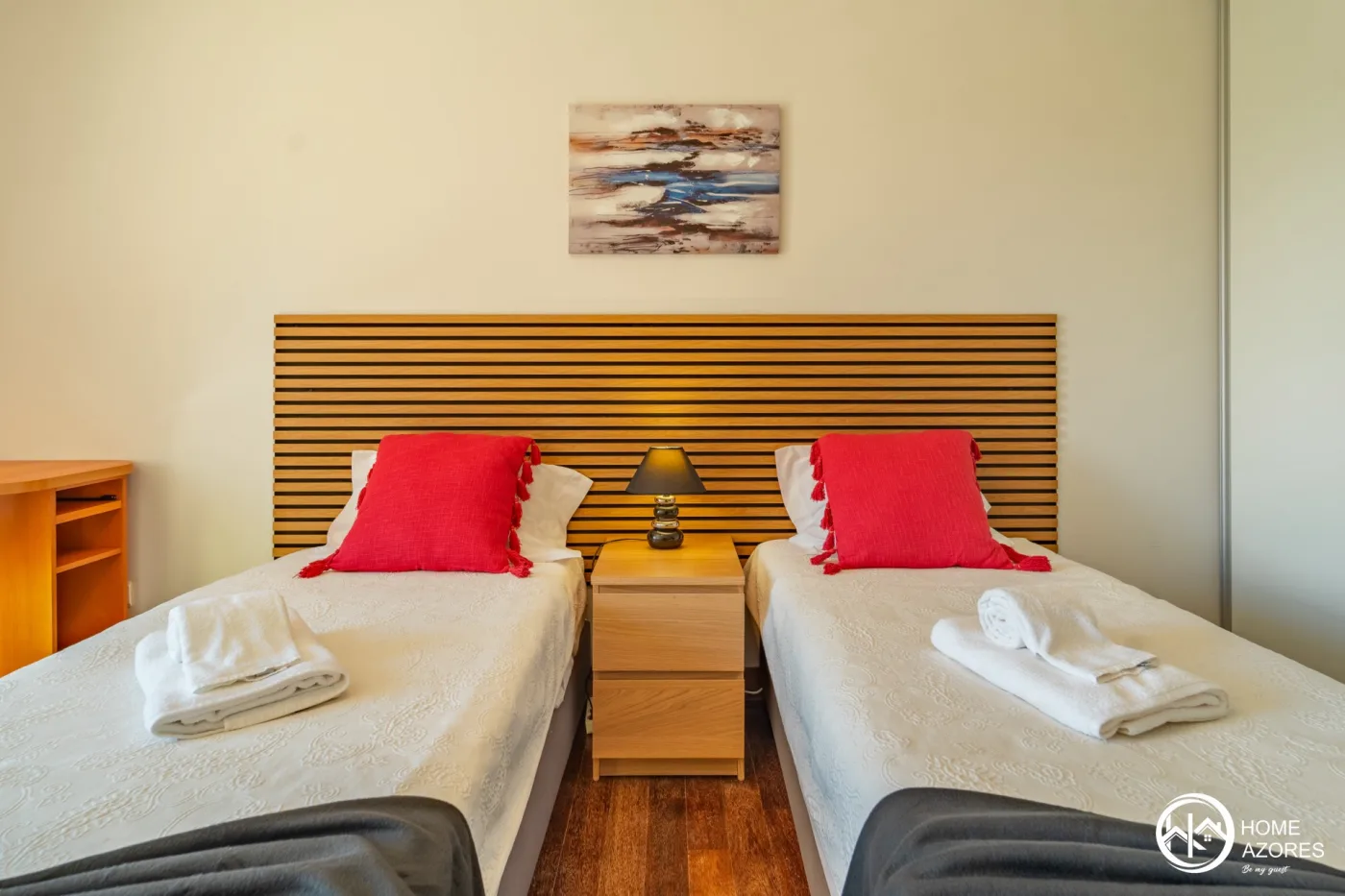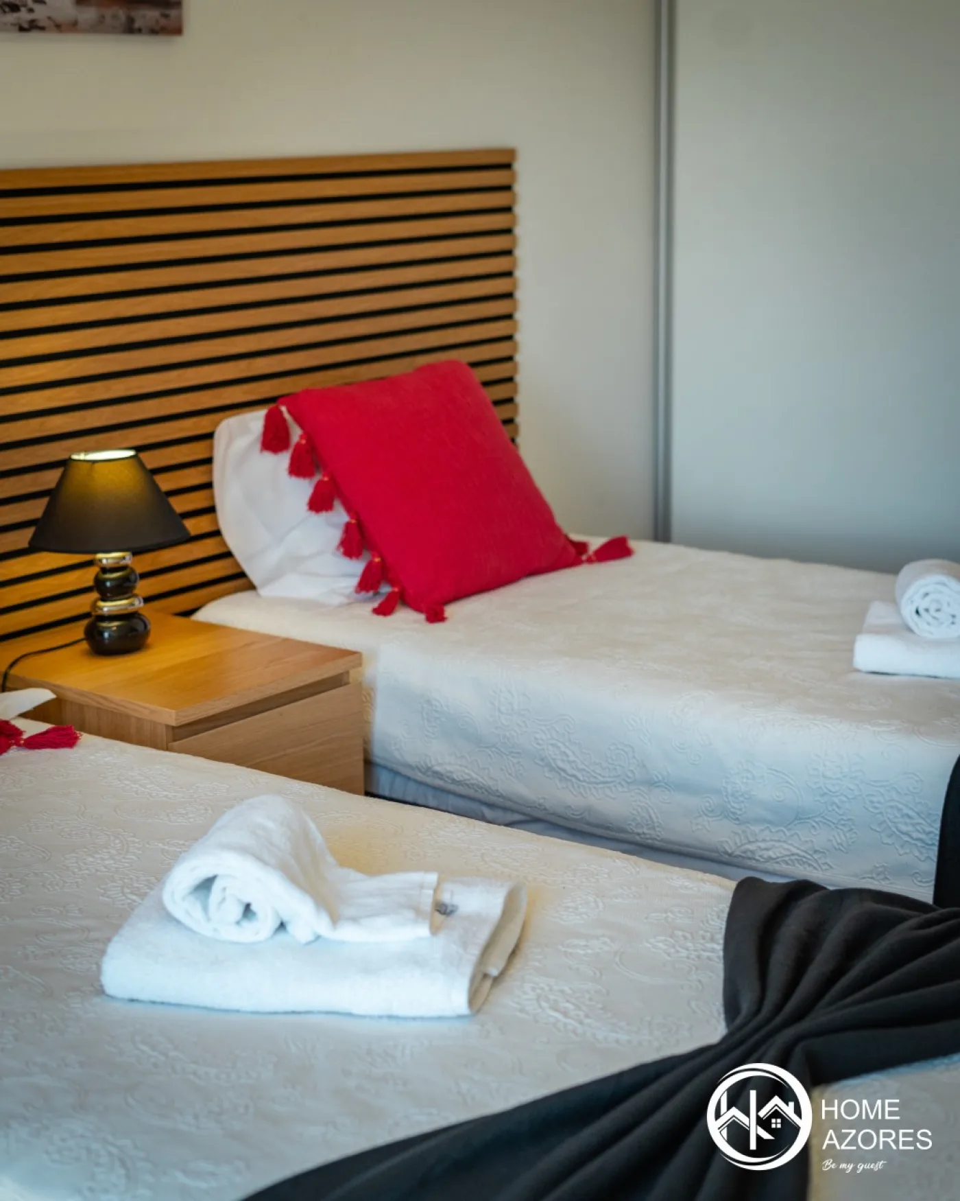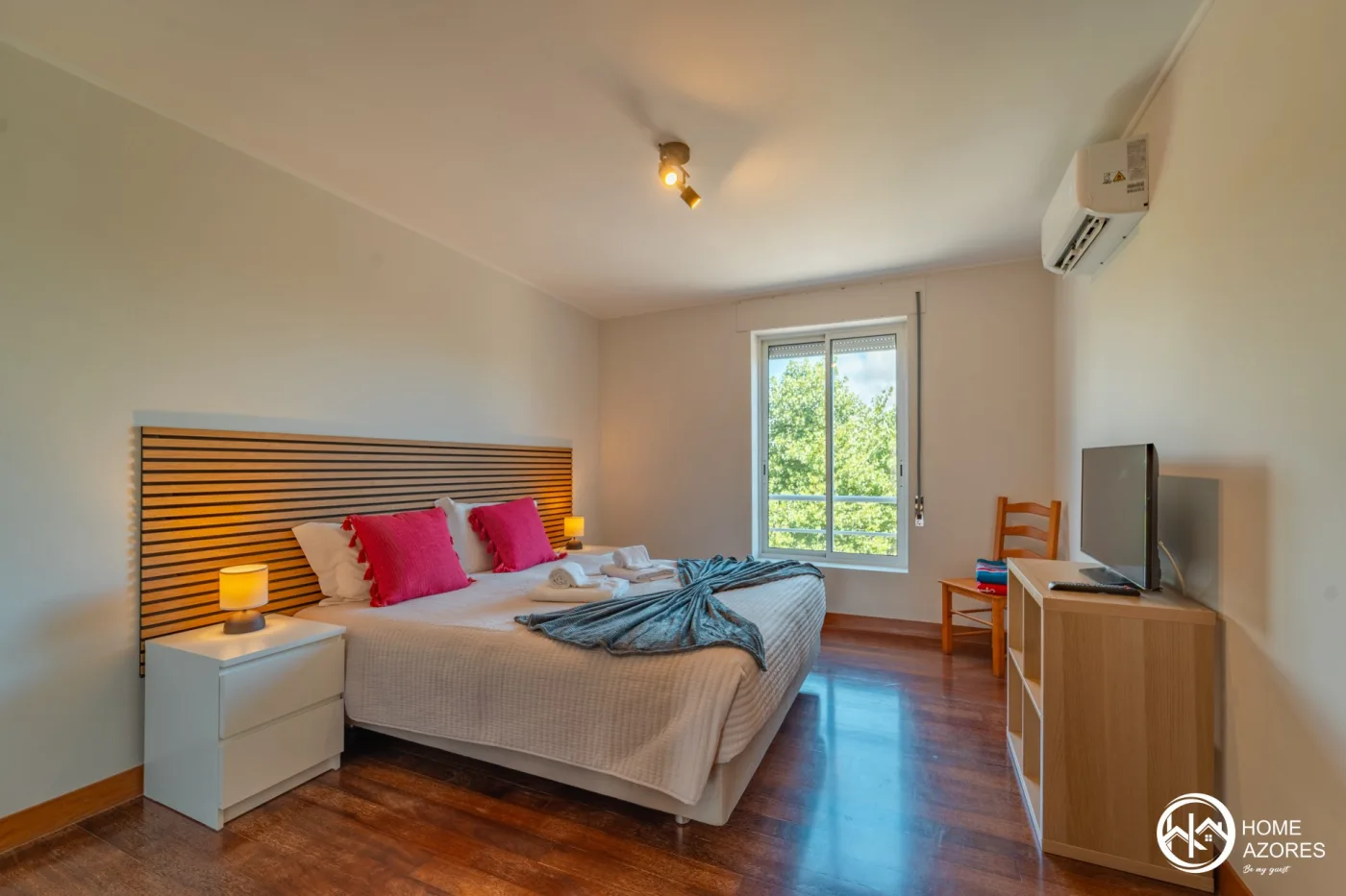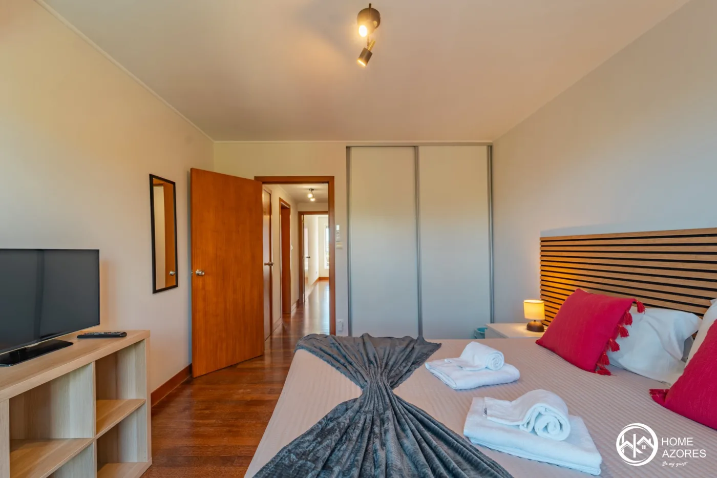 Apartamento com tudo o que precisa para umas férias inesquecíveis na Ilha de São Miguel - Açores. Espaço com zonas amplas e com uma decoração leve e moderna. Tem uma agradável varanda na sala com mesa de refeição para 2 pessoas.