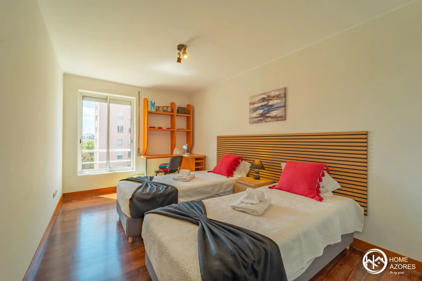 Este apartamento tem 2 quartos, 1 casa de banho completa, 1 cama Queen Size (200x160) e 2 camas single (200x90).